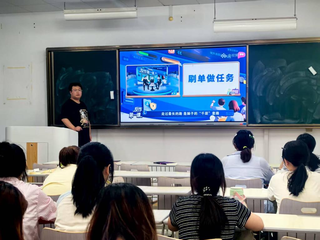 学院高度重视网络安全教育工作,将此次宣传周活动纳入秋季学期安全教育总体部署,由各年级辅导员牵头组织实施,采用 “主题班会集中观看 + 宿舍自主观看” 双模式,组织全院学生同步收看9月16日上午“大中小学生反诈大讲堂”。直播中,民警围绕常见网络诈骗类型,结合真实案例拆解 “刷单返利”“虚假购物”等诈骗套路,细致讲解识骗防骗技巧,鲜活的案例与实用的知识引发学生热烈讨论,有效强化学生反诈认知。针对新生群体,辅导员充分利用军训课余时间,专门组织新生集中观看直播,抓住入学教育关键节点,为新生筑牢网络安全 “第一道防线”。