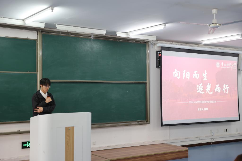 为充分发挥优秀学生榜样示范作用,引导2025级新生科学合理规划大学学习与生活,11月20日在砺志楼T2412举行了新生入学教育系列之2025年国家奖学金获得者优秀事迹宣讲会,由我院2025年国家奖学金获得者熊锐、高斯雨、谭锐、冯瑶四位同学主讲,2025级全体新生参加。