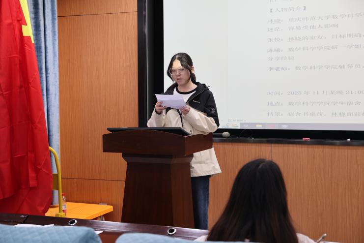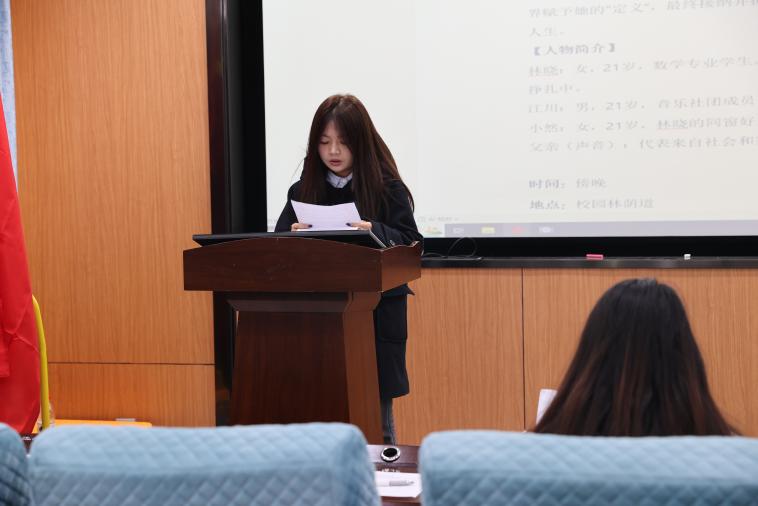 学院心理专员雍华益老师对参赛作品给予高度评价,她特别肯定了同学们将数学学科特色与心理议题深度融合的鲜明亮点。同时,她从专业角度建议,在后续排演中应注重将激烈的内心冲突与学科元素,转化为更具表现力的舞台语言。