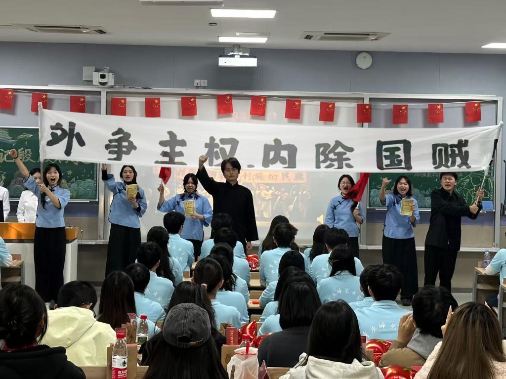 首次接入以“教育救国信念”为主题,同学们以历史情景剧的形式再现了五四运动场景,生动展现了百年前师生“教育救国”的赤子之心,引发在场同学的强烈共鸣。
