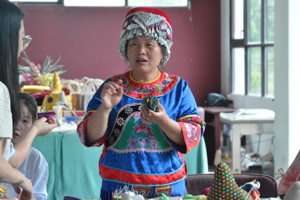 在工坊内,资深非遗传承人杨远菊老师热情接待了实践团成员,并引领实践团成员参观非遗作品,实践团成员就非遗工坊的起源及初衷、运营状况、技艺特点等问题对杨老师进行了访谈,杨老师一一作答。