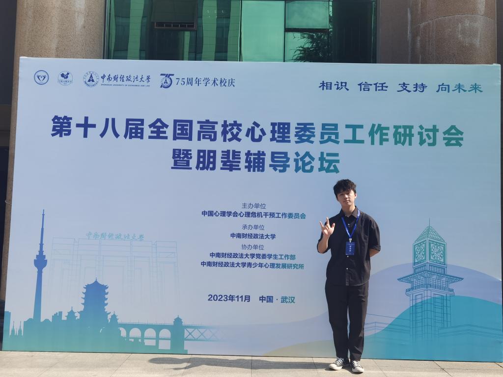 11月1日至3日,第十八届全国高校心理委员工作研讨会暨朋辈辅导论坛在中南财经政法大学举行。我院2021级信息与计算科学任俊洁同学荣获第六届“全国百佳心理委员”荣誉称号。