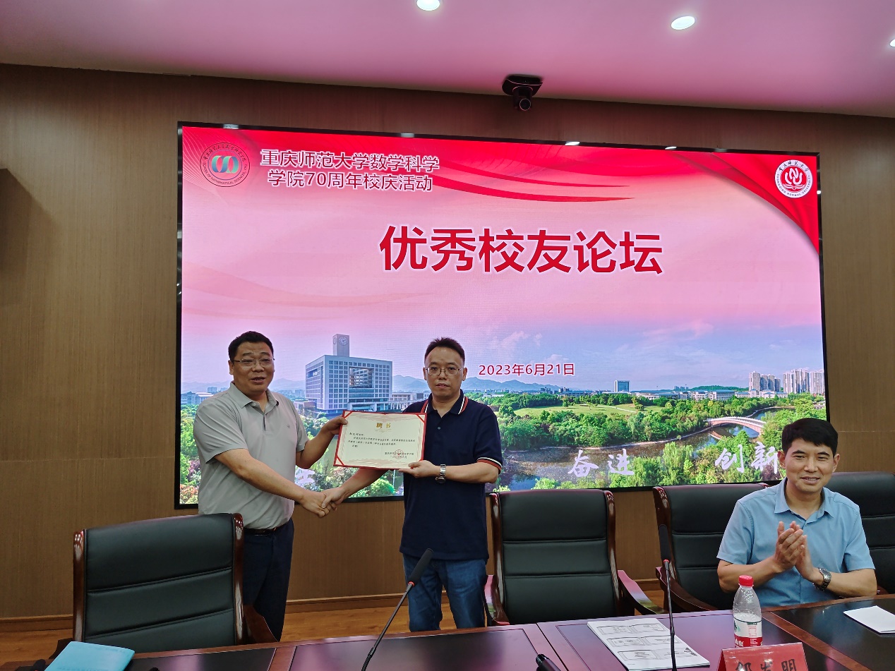 论坛上,杨志春院长还向邹发明校友颁发了学科教学(数学)专业硕士研究生校外指导教师聘书。