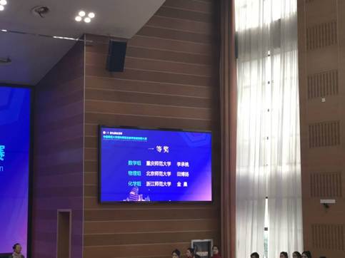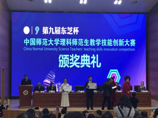 2018年12月25至28日,在浙江师范大学举行了第九届东芝杯中国师范大学理科师范生教学技能创新大赛。经过校内赛前演练、礼仪指导等多环节遴选与培训,我院推出2016级数学与应用数学专业李承桃同学参赛。