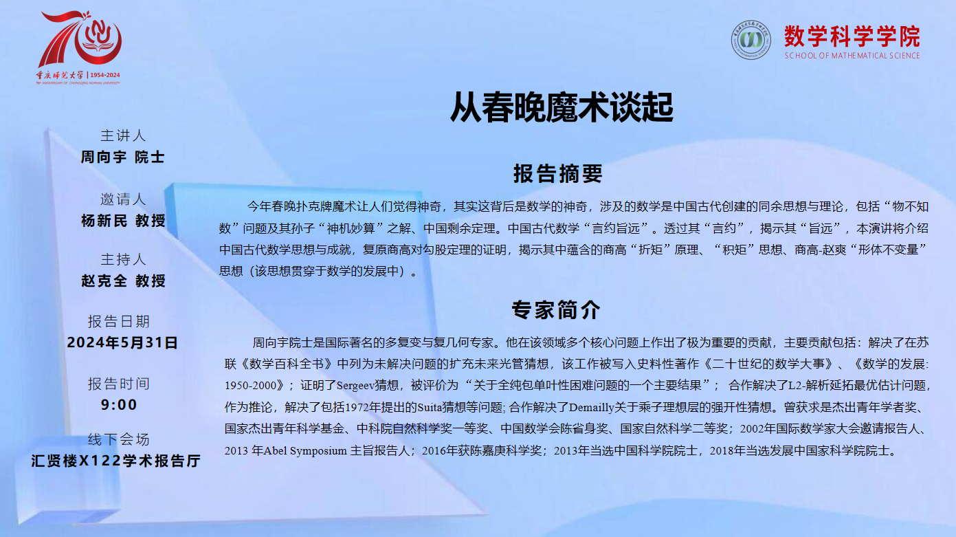 学术报告——周向宇院士(中国科学院数学与系统科学研究院)