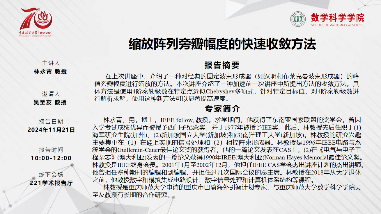 学术报告——林永青教授(新加坡南洋理工大学)