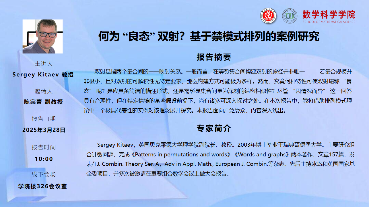 学术报告——Sergey Kitaev教授(英国思克莱德大学)