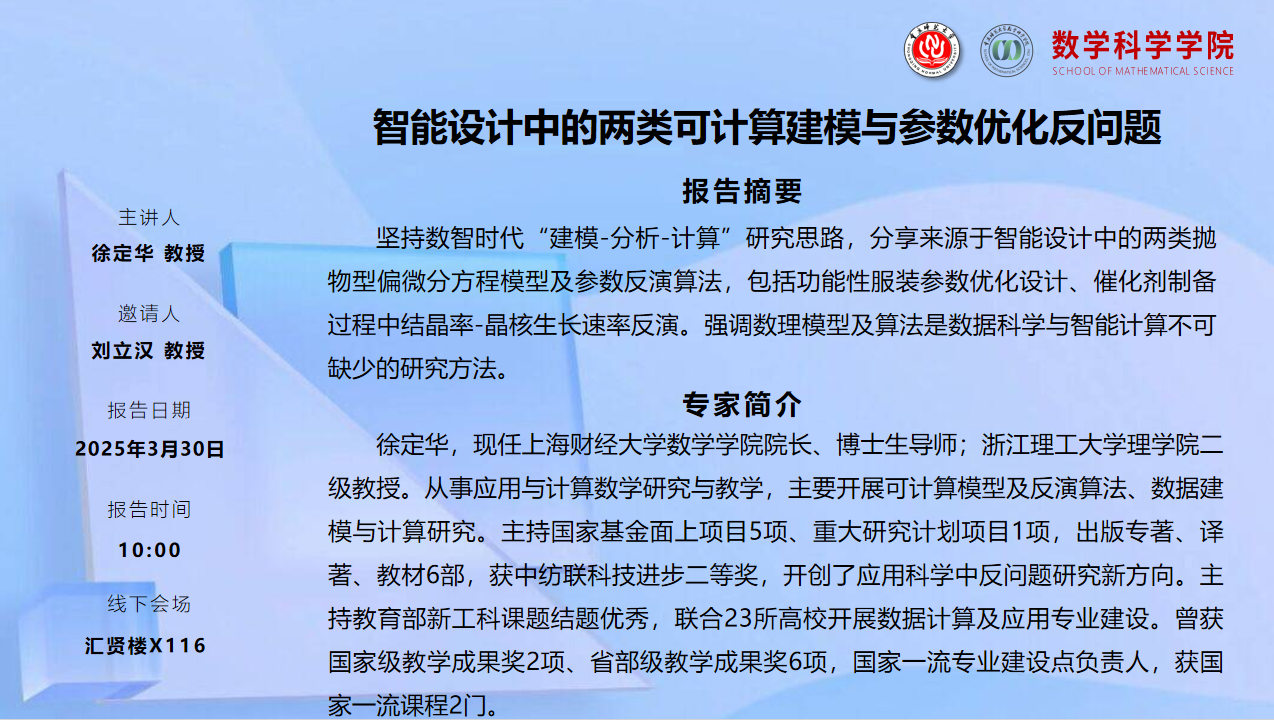 学术报告——徐定华教授(上海财经大学)