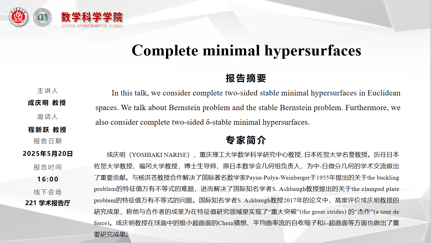 学术报告——成庆明教授(重庆理工大学)