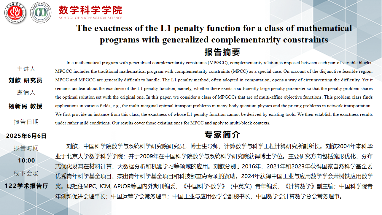 学术报告——刘歆研究员(中国科学院数学与系统科学研究院)