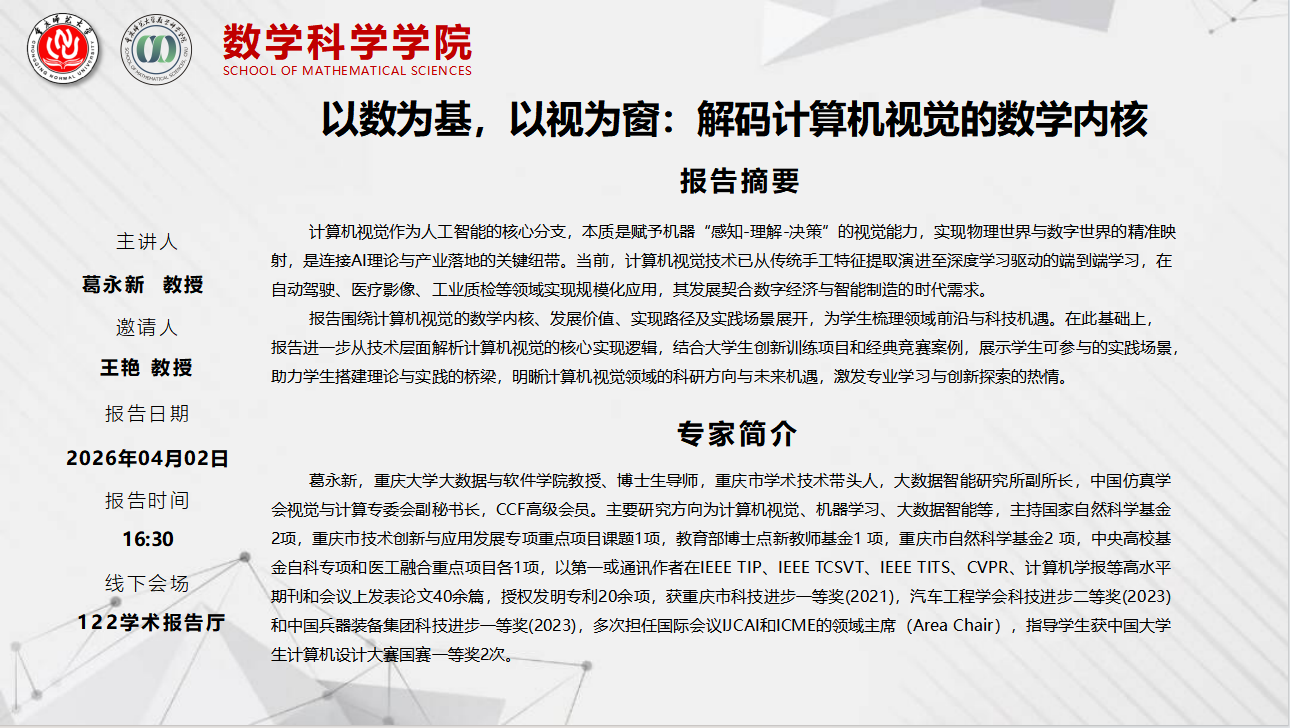 学术报告——葛永新教授(重庆大学)