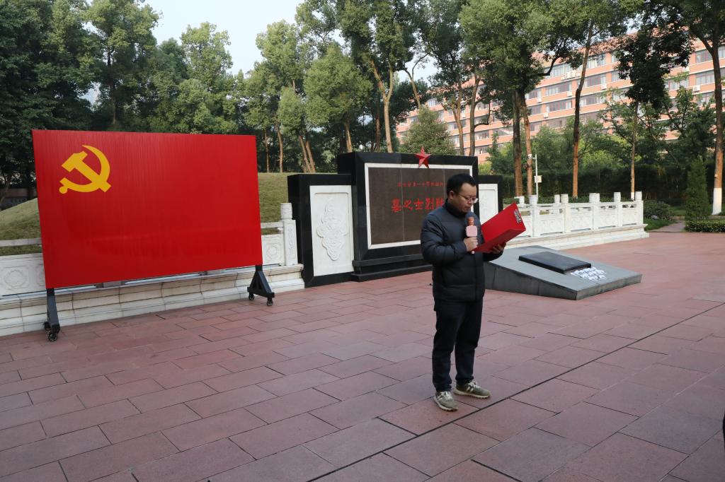 活动在庄重肃穆的氛围中拉开帷幕。运筹与统计系党支部书记夏远梅同志宣布党建联建活动启动,全体党员首先在烈士墓前重温入党誓词,由学院党委副书记、院长赵克全同志领誓,铿锵有力的誓言让党员们的初心使命更加坚定。随后,运筹与统计系党支部宣传委员唐润彬同志、应用数学系党支部书记莫长鑫同志分别分享红色故事,讲述了革命先辈在狱中坚守信仰、坚贞不屈、英勇斗争的感人事迹。
