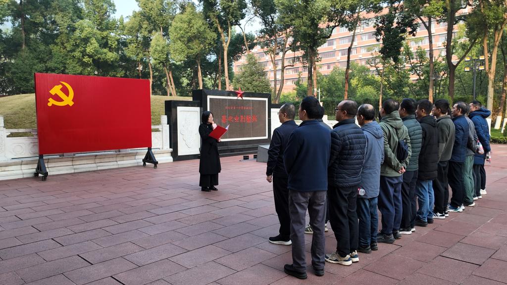 接着,全体党员在烈士陵园合影留念,并有序前往白公馆开展实地研学,透过珍贵实物与史料,重温革命志士身陷囹圄却坚守信仰的峥嵘岁月,并结合自身岗位思考“信仰的力量”对人才培养和科学研究工作的指引价值。午后,全体同志集体前往重庆1949大剧院,观看大型红色舞台剧《重庆・1949》,在沉浸式艺术体验中加深对红岩精神时代内涵的理解。