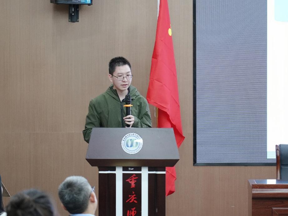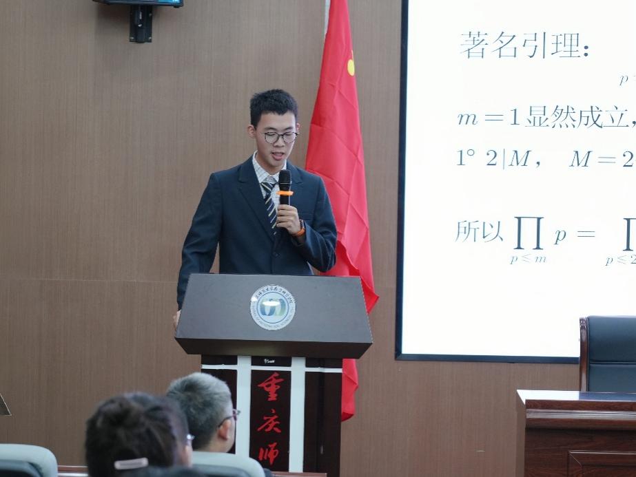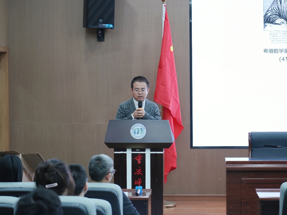 在主题报告环节,重庆国家应用数学中心杨凯龙副教授为在场师生作了一场内容丰富、深入浅出的科普报告。他以生动的语言介绍了当前数学研究的前沿动态,激发了在场师生对数学理论与应用探索的浓厚兴趣,营造了积极活跃的学术交流氛围。