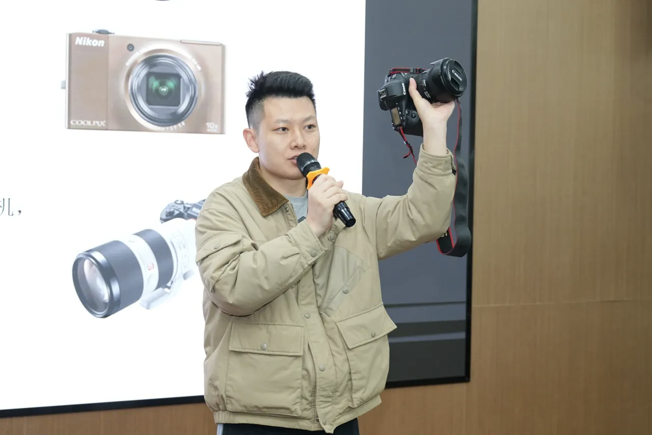 在照片拍摄与后期处理技巧环节,康诚老师以生动比喻阐释了快门速度、光圈大小、感光度及色温等参数的适用场景,通过现场拍摄案例直观展示了构图要领与用光技巧,并现场演示了使用PS、PR等软件进行图片修饰与优化的基本方法。