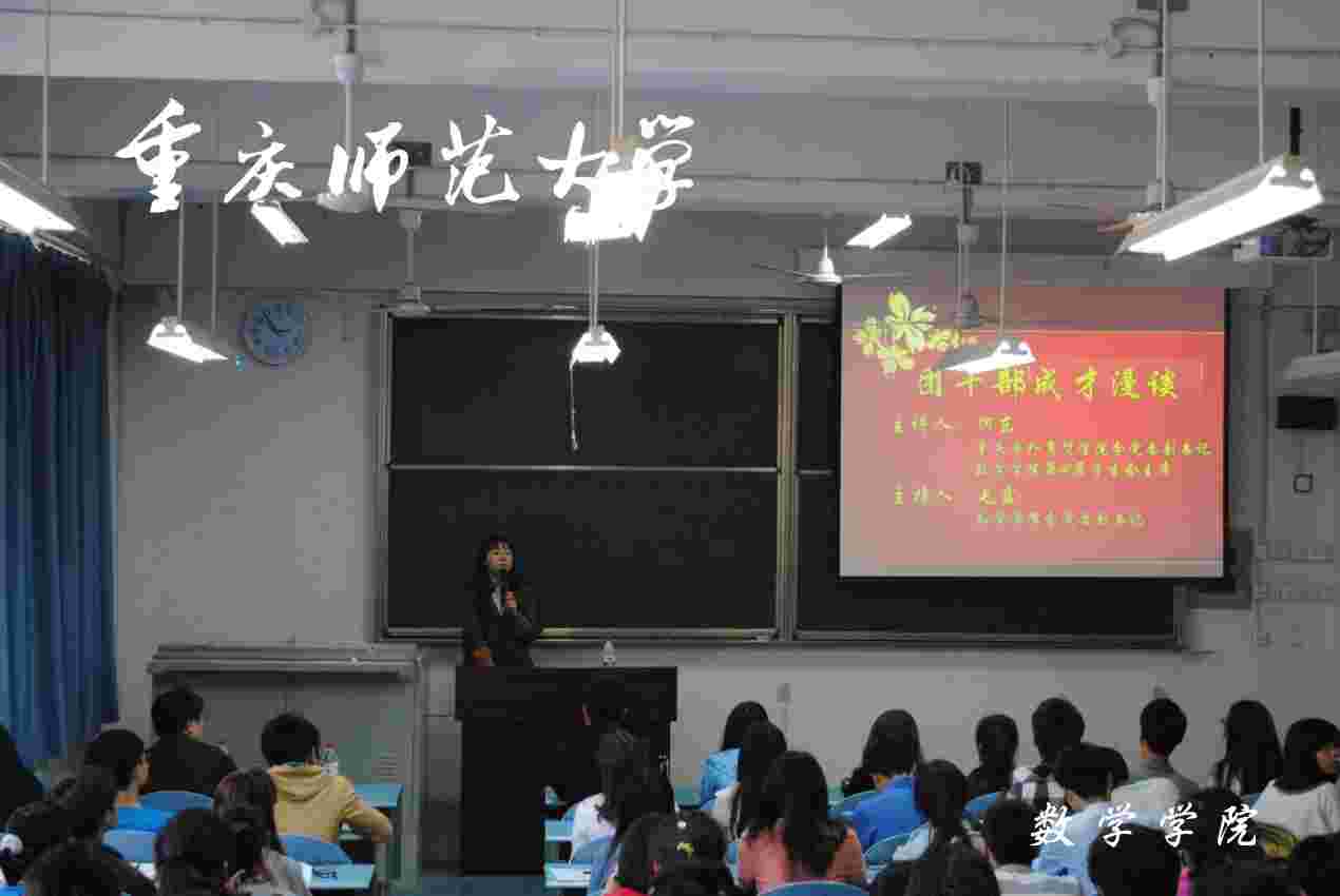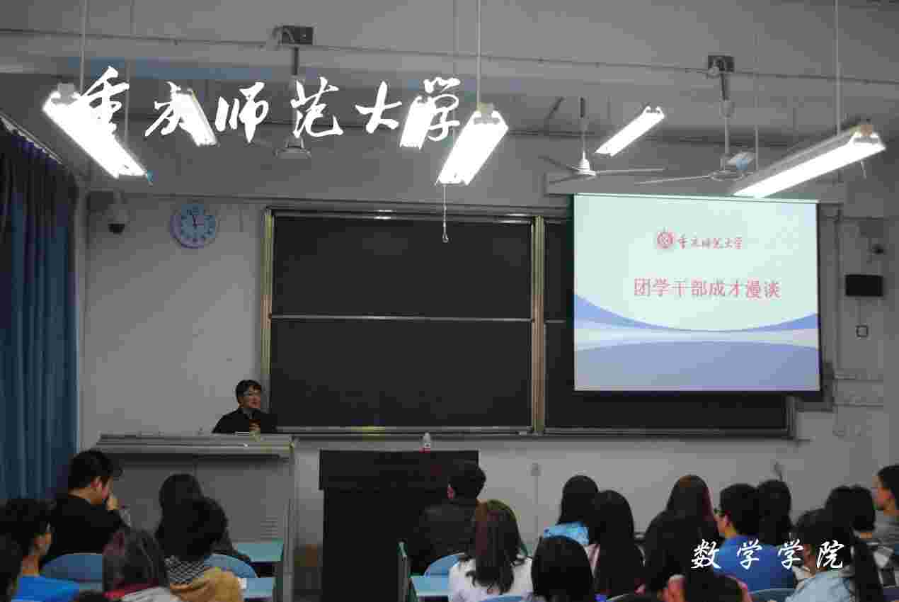 为使全体学生中树立榜样,积极发挥我院历届拥有大量优秀毕业生的资源作用,从2012年起,我院特别组织了定期的“优秀院友导航工程”,定期邀请历届优秀毕业生返校,为学院全体学生带来不一样的视听盛宴。3月21日下午3点5401,我院邀请到数学与应用数学92级毕业生、数学学院第41届学生会主席、现任太阳集团tcy8722涉外商贸学院党工委副书记何东老师,专门为我们带来了“团学干部成长漫谈”的精彩讲座。我院分党委副书记毛霞和团委副书记李鑫参加了本次培训,其中毛霞老师担任主持。