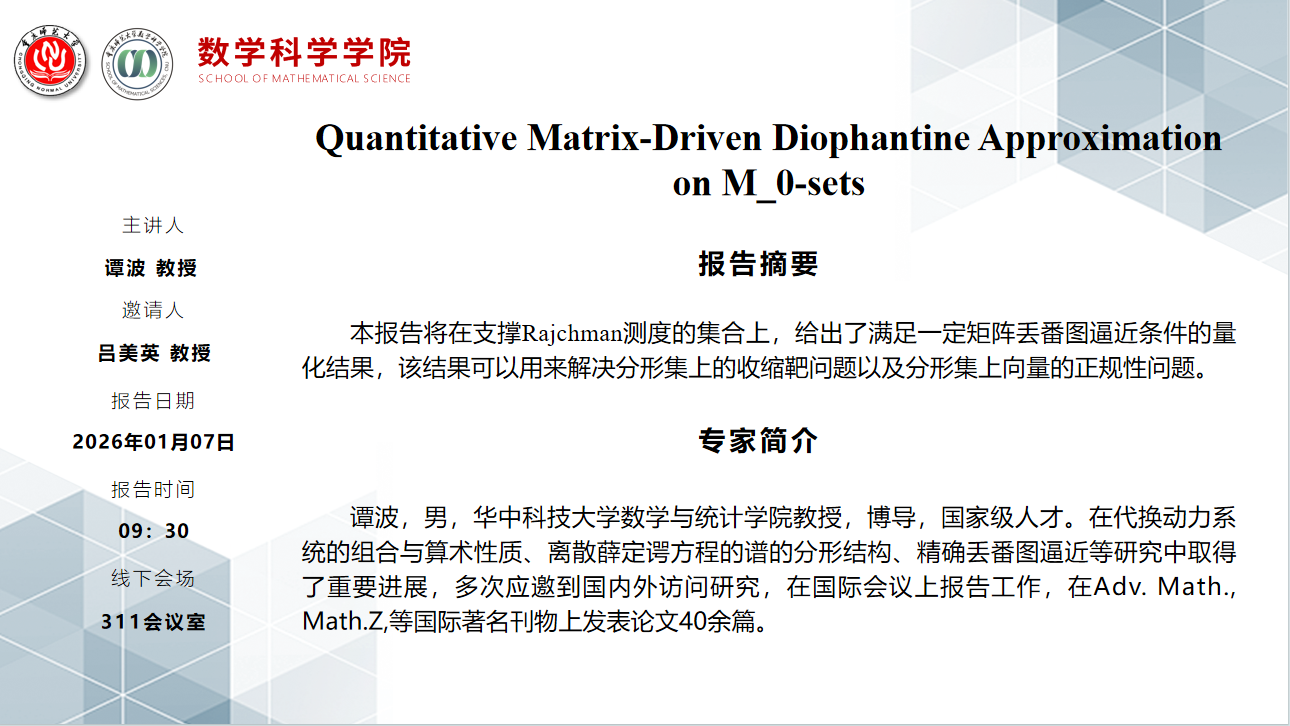 学术报告——谭波教授(华中科技大学)